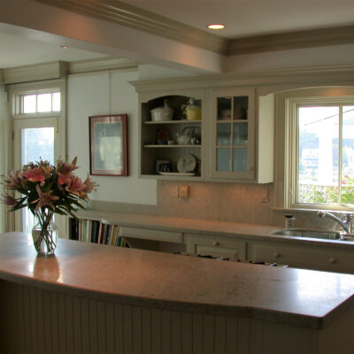 When new owners purchased this older beach house, they wanted a cleaner layout and more defined spaces in which to enjoy the enviable setting. Today, the living spaces purposefully flow into one other in contrast to the older floor plan where rooms were randomly interconnected after numerous renovations. The public and private spaces are quite distinct from one another, giving the house a much more personal feel. With an efficient office and pretty private decks, this beach house is now a comfortable, full-time home.