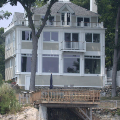 This non-descript house in a gorgeous setting was crying out for distinction. Inviting porches, beachy colors and view-loving windows began its lovely reinvention.